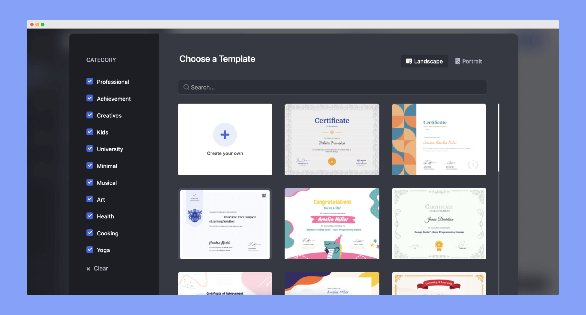 The background of the certificate is what will catch the attention of the viewer first. That’s why we made it easier to customize the backdrop of the certificate.
