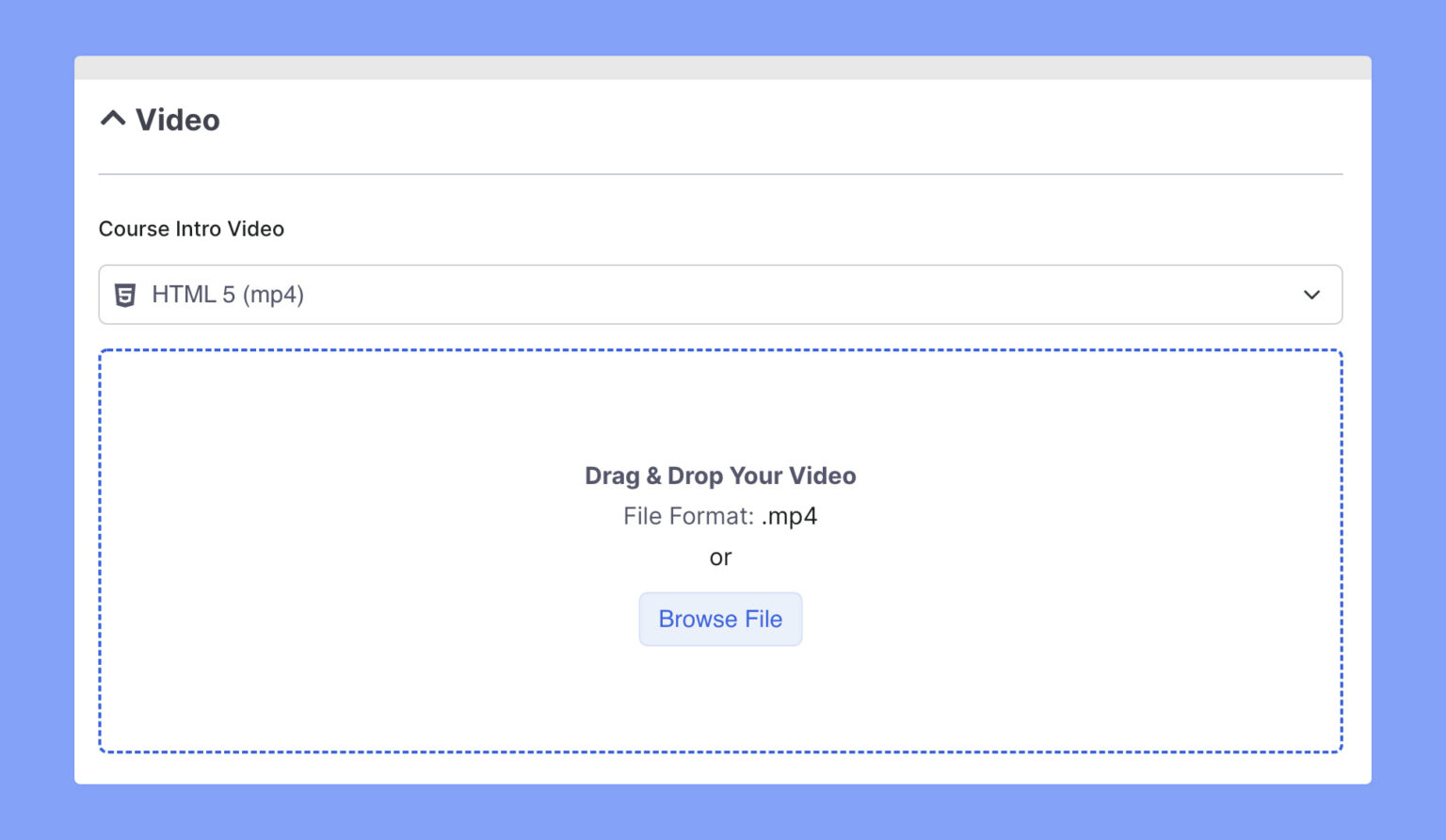 The “Course Intro Video” section allows you to add a video introduction to your online course that will appear on the Course Overview Page. You can choose from multiple video sources, such as HTML5, YouTube, or Vimeo to include the video in your course.