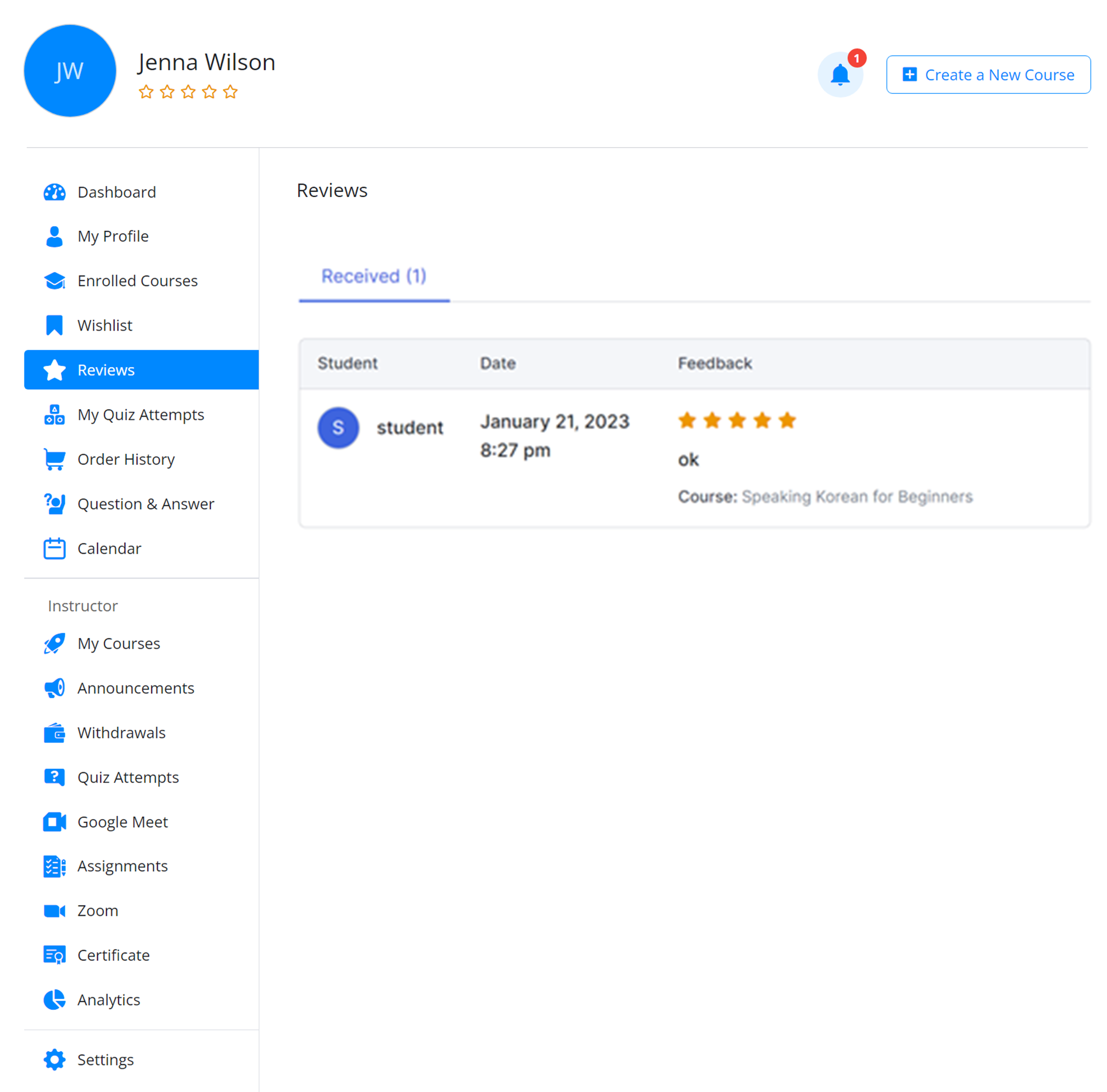 You also get a list of the most popular courses you published right from the dashboard.